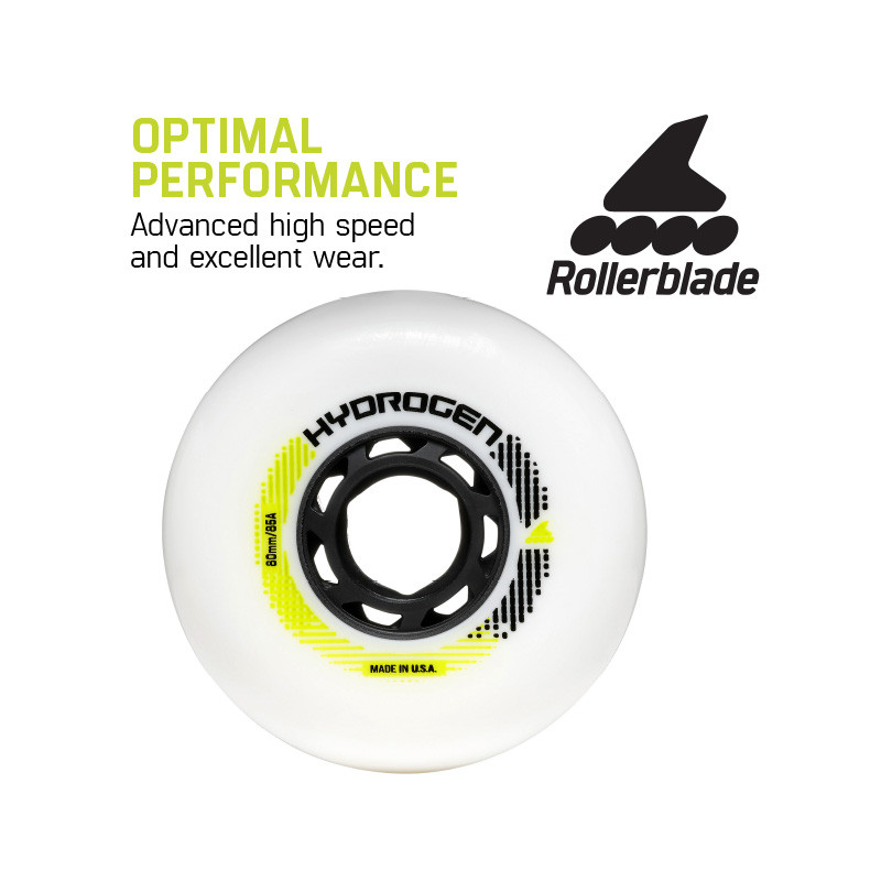 Le ruote Hydrogen 80mm sono progettate per le prestazioni atletiche definitive. Prodotte negli Stati Uniti con una esclusiva formula Premium; il loro design del nucleo a scanalature sostiene l'esterno in uretano che migliora la velocità, la tenuta e la durata. 8 ruote per set.